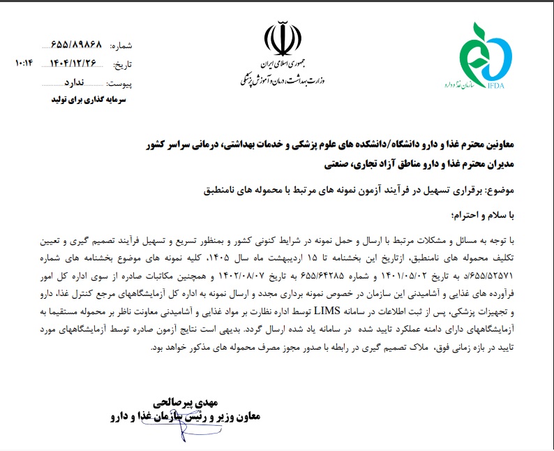برقراری تسهیل در فرآیند آزمون نمونه های مرتبط با محموله های نامنطبق گروه خبری : اطلاعیه ها کد خبری : 148409 کپی کلیدواژه