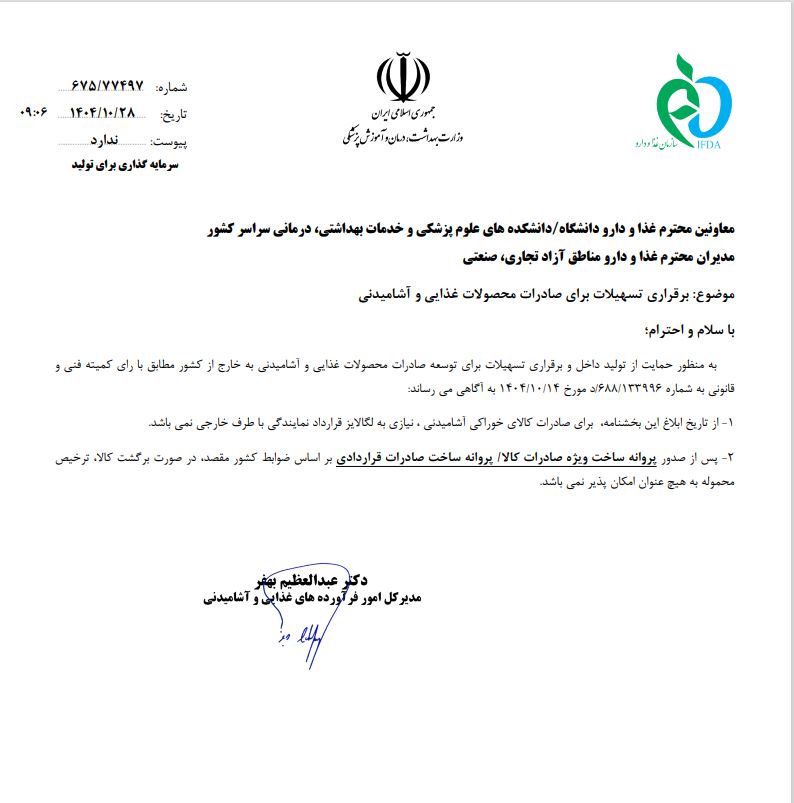 برقراری تسهیلات برای صادرات محصولات غذایی و آشامیدنی